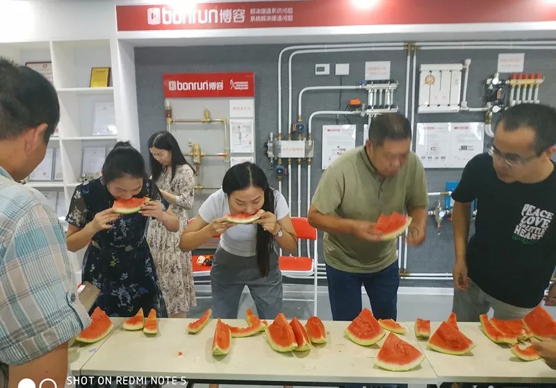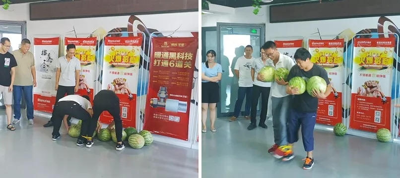 2018年8月20日上午,博容吃西瓜大賽在博容培訓(xùn)室拉開帷幕!在炎熱的天氣里舉行這樣的活動(dòng),拉近了員工之間的關(guān)系,吃出了涼爽、玩出了快樂,同時(shí)緩解了工作的壓力!大會(huì)分四個(gè)環(huán)節(jié):猜西瓜重量、搬運(yùn)西瓜、吃瓜PK、踩指壓板!在歡聲笑語中比賽熱烈進(jìn)行著!