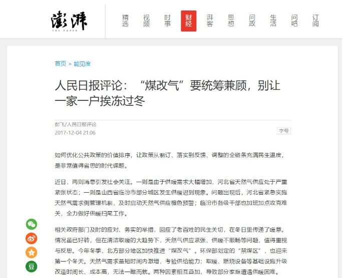 面對種種亂象,環(huán)保部緊急發(fā)函,叫停“煤改氣”,宜煤則煤、宜氣則氣。至此,轟轟烈烈的“煤改氣”運(yùn)動宣布告一段落。