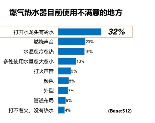 不同統(tǒng)計途徑得到不同的具體數(shù)值,大多統(tǒng)計中“打開熱水龍頭出冷水”都被排在用戶使用熱水過程中不滿意的第一位影響因素,網(wǎng)上也有很多關(guān)于這個問題的討論內(nèi)容。