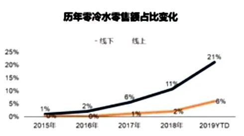 下圖是最近幾年零冷水產(chǎn)品在線上和線下銷售占比情況: